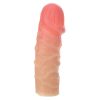 Instantly add 1.5 inches to your shaft for big-time fun in bed! Textured design for stimulation. Ball strap for secure fit. Order now for discreet shipping.