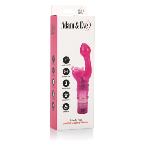 An enlarged tip goes to work on your G-Spot while the butterfly stimulator plays with your clit & lips. 100% discreet shipping at Adam & Eve.