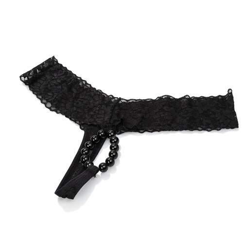 Floral lace thong looks so pretty and features 12 smooth beads that frame her outer lips. As you make love, the beads roll and massage with every thrust.