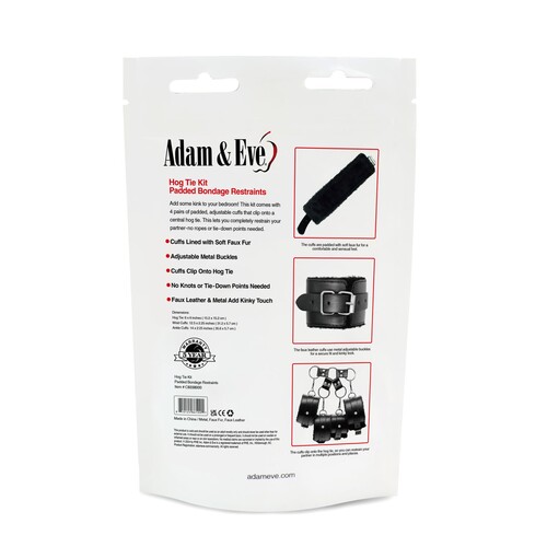 Discover all the ways to play with fur lined wrist & ankle cuffs that restrain your lover for kinky bondage games with the Adam & Eve Hog Tie Kit.