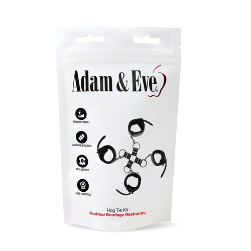 Discover all the ways to play with fur lined wrist & ankle cuffs that restrain your lover for kinky bondage games with the Adam & Eve Hog Tie Kit.