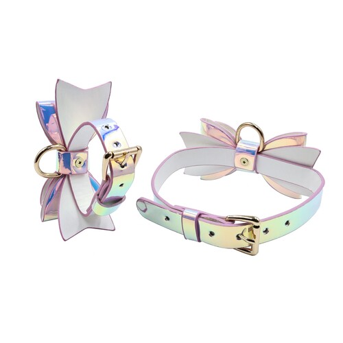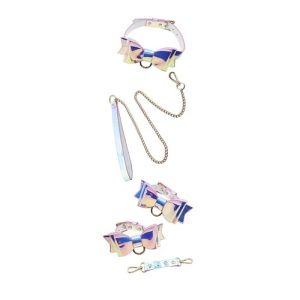 The Fairy Bondage Set is great for nights of kinky fun! Iridescent gear looks totally magical. Cuffs, collar, leash and connector included!