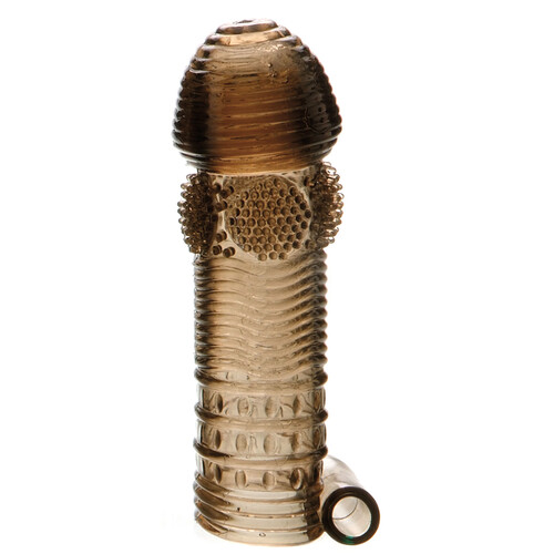 Over 25,000 sold. Transform your wood with 5 intense sleeves. Add girth, swirls, and texture to drive her wild. Includes bullet vibe for shared bliss.