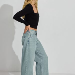 Addison Square Neck Top Black women – This is a perfect basic long sleeve for the girlies leaning into normcore in a knowing, girl-next-door-playing-it-cool type of way. YK? Features Square neckline Long sleeves Partial double lining Size & Fit Fitted, stretchy Cropped length Model is wearing size S Materials & Care 95% cotton, 5% spandex Machine wash, cold Imported