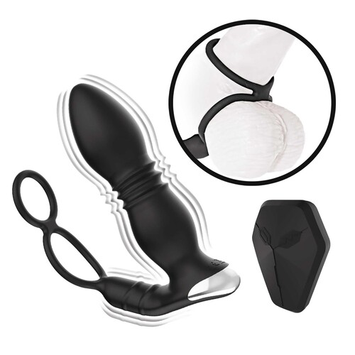 Play hard with this all-in-one male stimulator! Thick thruster plug + taint vibration + penis & ball rings = big O’s! Remote control. Discreet shipping.