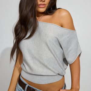 Asymmetric Cinched Waist Sweater Gray women – Getting ready is a cinch. Features Asymmetric off-the-shoulder construction Short cap sleeves Cinched rib knit waist Size & Fit Fit: Relaxed Length: Cropped Model is wearing size S Materials & Care Content: 70% viscose, 30% nylon Care: Machine wash, cold Imported