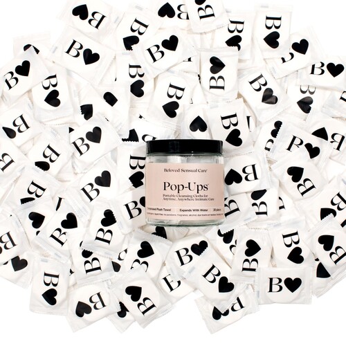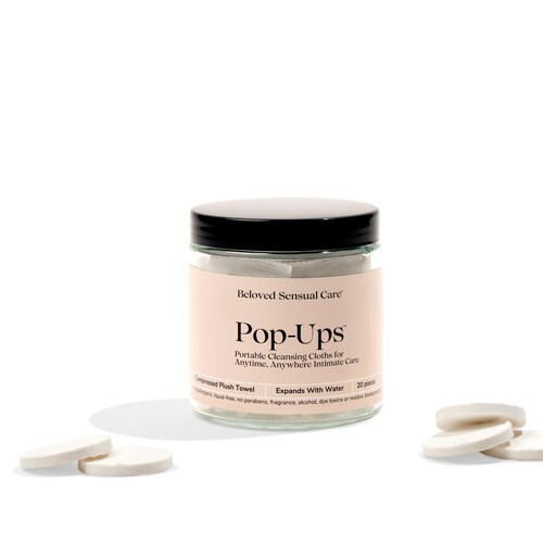 20 pc. portable cleansing cloths. Perfect for anytime, anywhere intimate care! Compressed plush towelette expands with water. Use before or after intimacy!