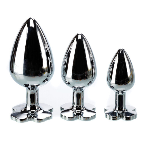 Shake that shamrock! This metal butt plug features faux 4 leaf clover gems. Available in small, medium & large. Discreet shipping.