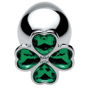 Shake that shamrock! This metal butt plug features faux 4 leaf clover gems. Available in small, medium & large. Discreet shipping.
