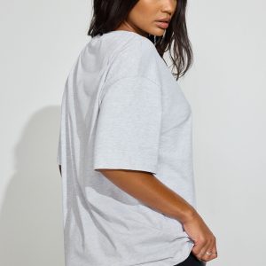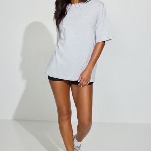Boyfriend Tee Gray women – Steal his shirt and then dump him! Features Ribbed crewneck collar Soft jersey knit Size & Fit Fit: Oversized Length: Long Model is wearing size S Materials & Care Content: 98% cotton, 2% viscose Care: Wash cold, inside out Imported