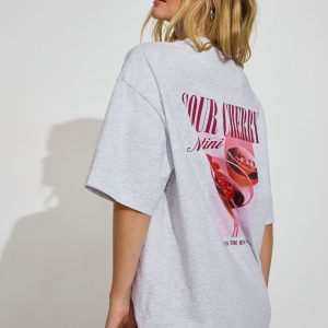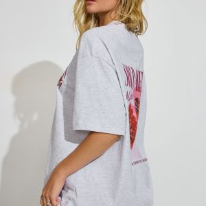 Boyfriend Tee Gray women – Steal his shirt and then dump him! Features Ribbed crewneck collar Soft jersey knit Size & Fit Fit: Oversized Length: Long Model is wearing size S Materials & Care Content: 98% cotton, 2% viscose Care: Wash cold, inside out Imported