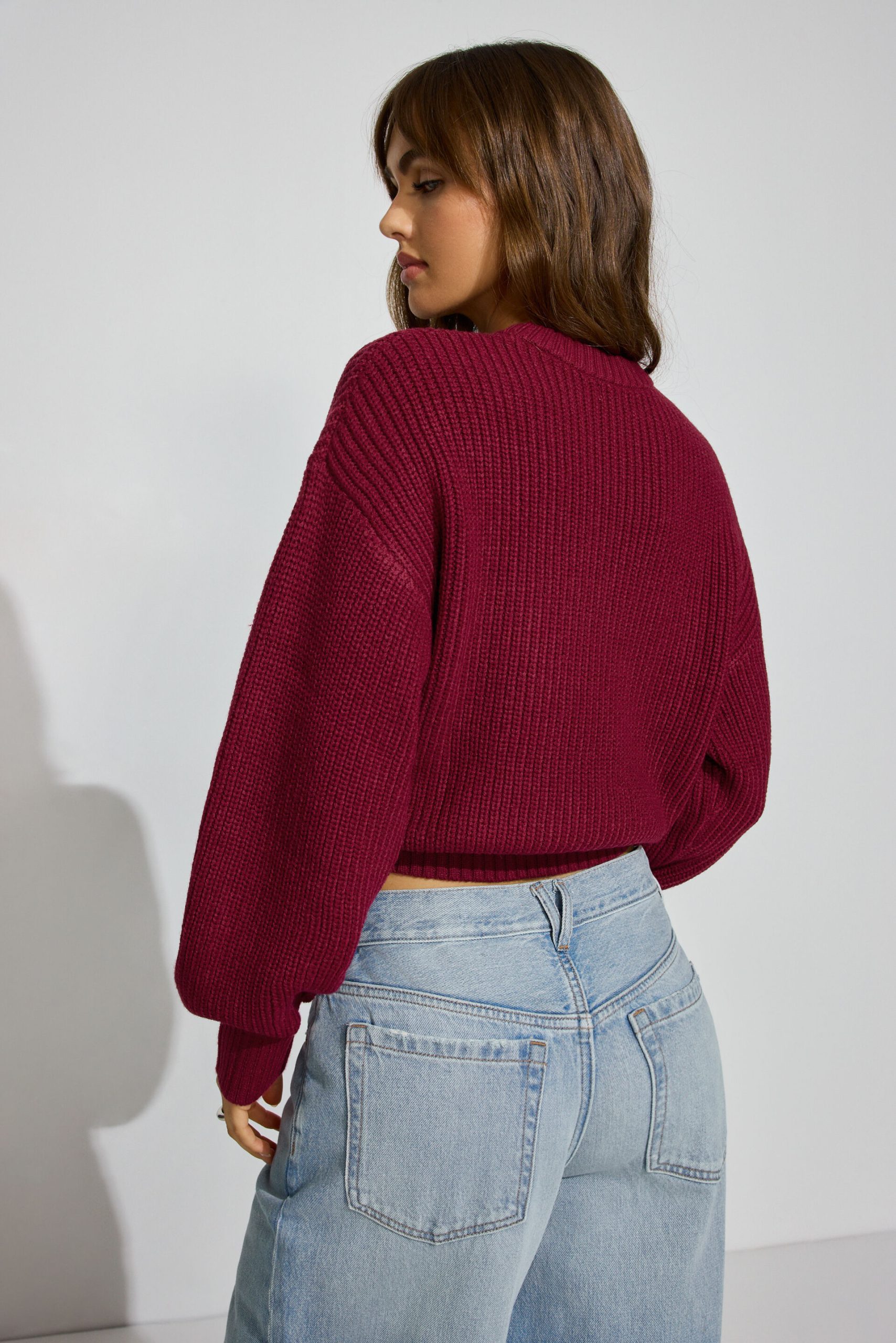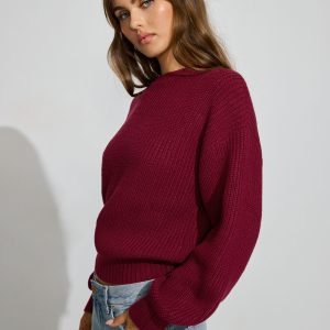 Bubble Sleeve Sweater Burgundy women – Cozy called, they want their sweater back. Features Rib knit crewneck, hem, and cuffs Dropped shoulders Balloon sleeves Size & Fit Relaxed fit Model is wearing size XS Materials & Care 80% acrylic, 20% cotton Hand wash, cold Imported