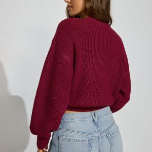 Bubble Sleeve Sweater Burgundy women – Cozy called, they want their sweater back. Features Rib knit crewneck, hem, and cuffs Dropped shoulders Balloon sleeves Size & Fit Relaxed fit Model is wearing size XS Materials & Care 80% acrylic, 20% cotton Hand wash, cold Imported