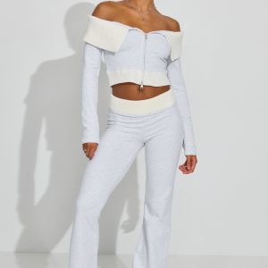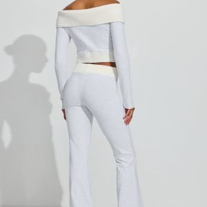 Combo Flare Sweatpants GREYS women – These flare sweatpants come with an ultra-thick knit waistband that feels like a hug <3 Features Elasticized ribbed waistband Raw-edge hem Size & Fit Fit: Fit and flare Rise: High Model is wearing size S Materials & Care Content: 95% cotton, 5% spandex Care: Machine wash, cold Imported