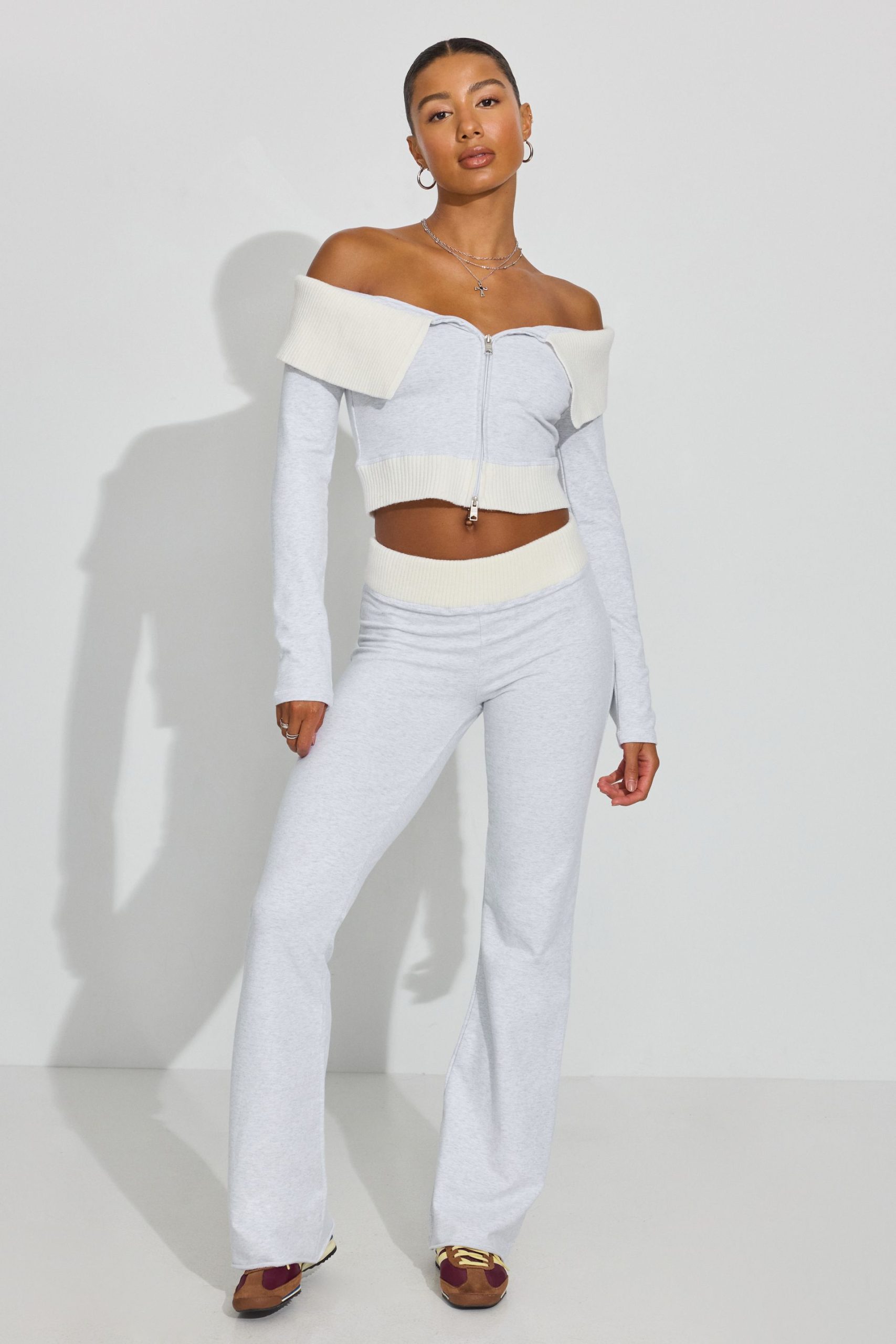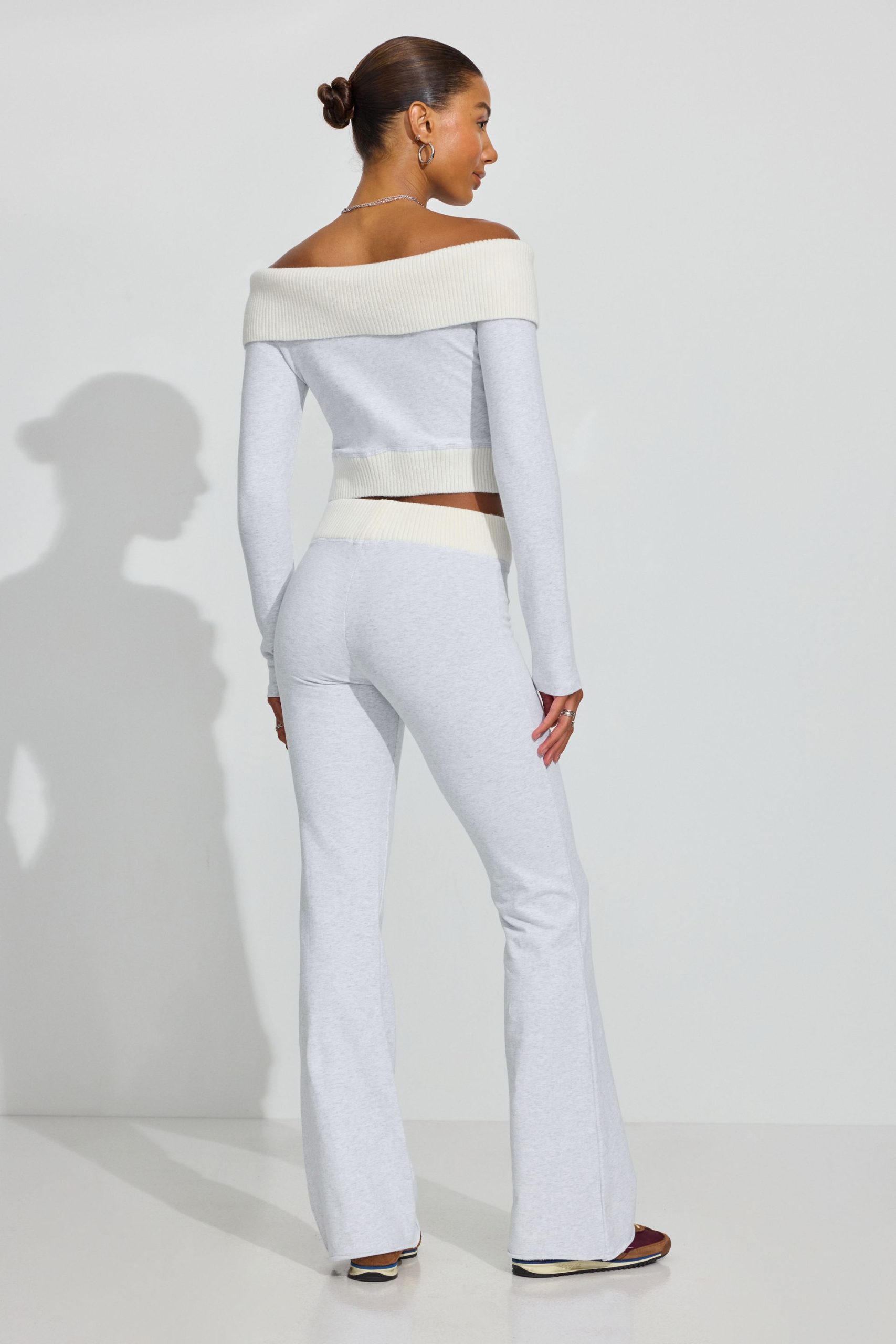 Combo Flare Sweatpants GREYS women – These flare sweatpants come with an ultra-thick knit waistband that feels like a hug <3 Features Elasticized ribbed waistband Raw-edge hem Size & Fit Fit: Fit and flare Rise: High Model is wearing size S Materials & Care Content: 95% cotton, 5% spandex Care: Machine wash, cold Imported