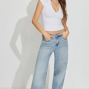 Cotton Sleek Deep V-Neck T Shirt Gray women – Match with jeans , perfect. Features Deep V-neck Short cap sleeves Stretchy! Size & Fit Fit: Fitted Length: Cropped Model is wearing size S Materials & Care Content: 88% cotton, 12% spandex Machine wash, cold Imported