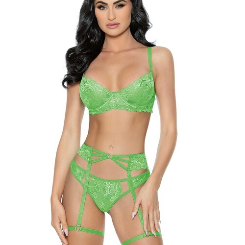 Daring 3Pc Bra, Garterbelt, G-String Set