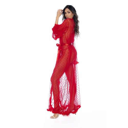 This Holiday Robe is all about seduction & luxury! Floor length & feather lined, perfect for holiday fun. Exclusively at Adam & Eve!