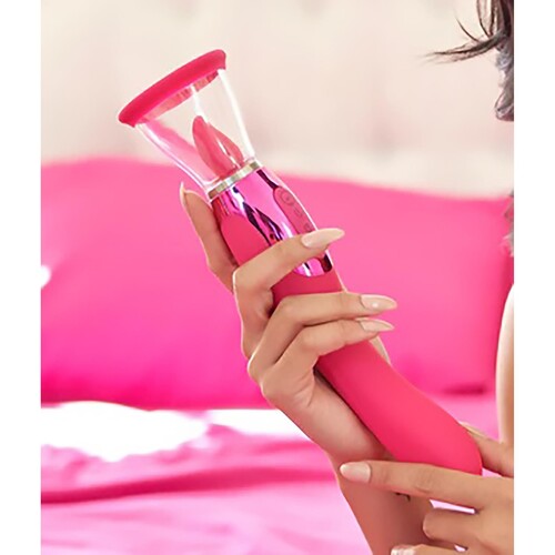 Indulge in full-service, luxurious pleasure with this full-service pump! Suction, vibration, and a licking tongue give you big O’s. Discreet shipping.