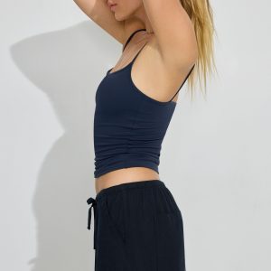 Lina Linen Shorts Navy women – So soft and with a baggy fit to better accentuate your little tops ! Features Self-tie drawstring at waistband Four-pocket styling Semi-sheer (in lighter colors) Size & Fit Fit: Relaxed Rise: 10.5