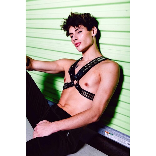 Be the ultimate stud in this pyramid studded harness! Great for gripping as you get down or attaching your favorite bondage gear. Discreet shipping.