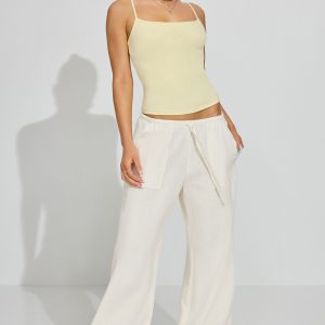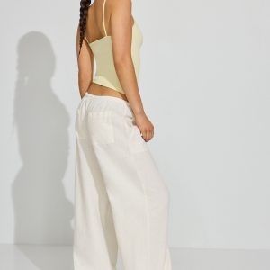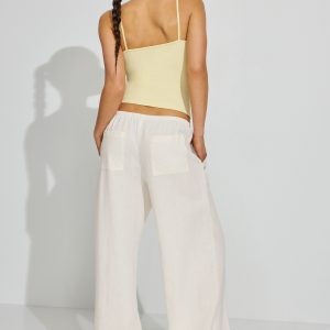 Millie Linen Pull-On Pants White women – So soft and with a baggy fit to better accentuate your little tops ! Features Self-tie drawstring at waistband Four-pocket styling Semi-sheer (in lighter colors) Size & Fit Fit: Relaxed Rise: 9.5