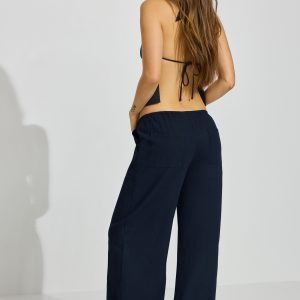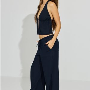 Millie Linen Pull-On Pants Navy women – So soft and with a baggy fit to better accentuate your little tops ! Features Self-tie drawstring at waistband Four-pocket styling Semi-sheer (in lighter colors) Size & Fit Fit: Relaxed Rise: 9.5