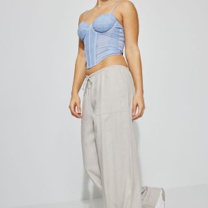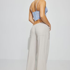Millie Linen Pull-On Pants Gray women – So soft and with a baggy fit to better accentuate your little tops ! Features Self-tie drawstring at waistband Four-pocket styling Semi-sheer (in lighter colors) Size & Fit Fit: Relaxed Rise: 9.5