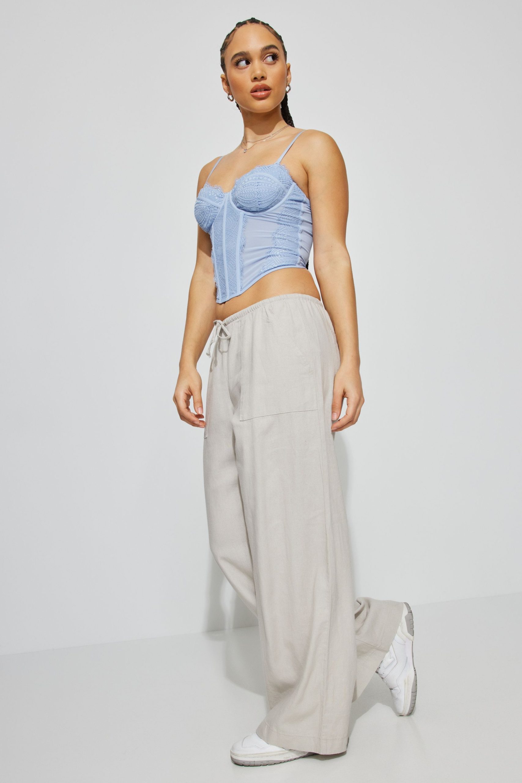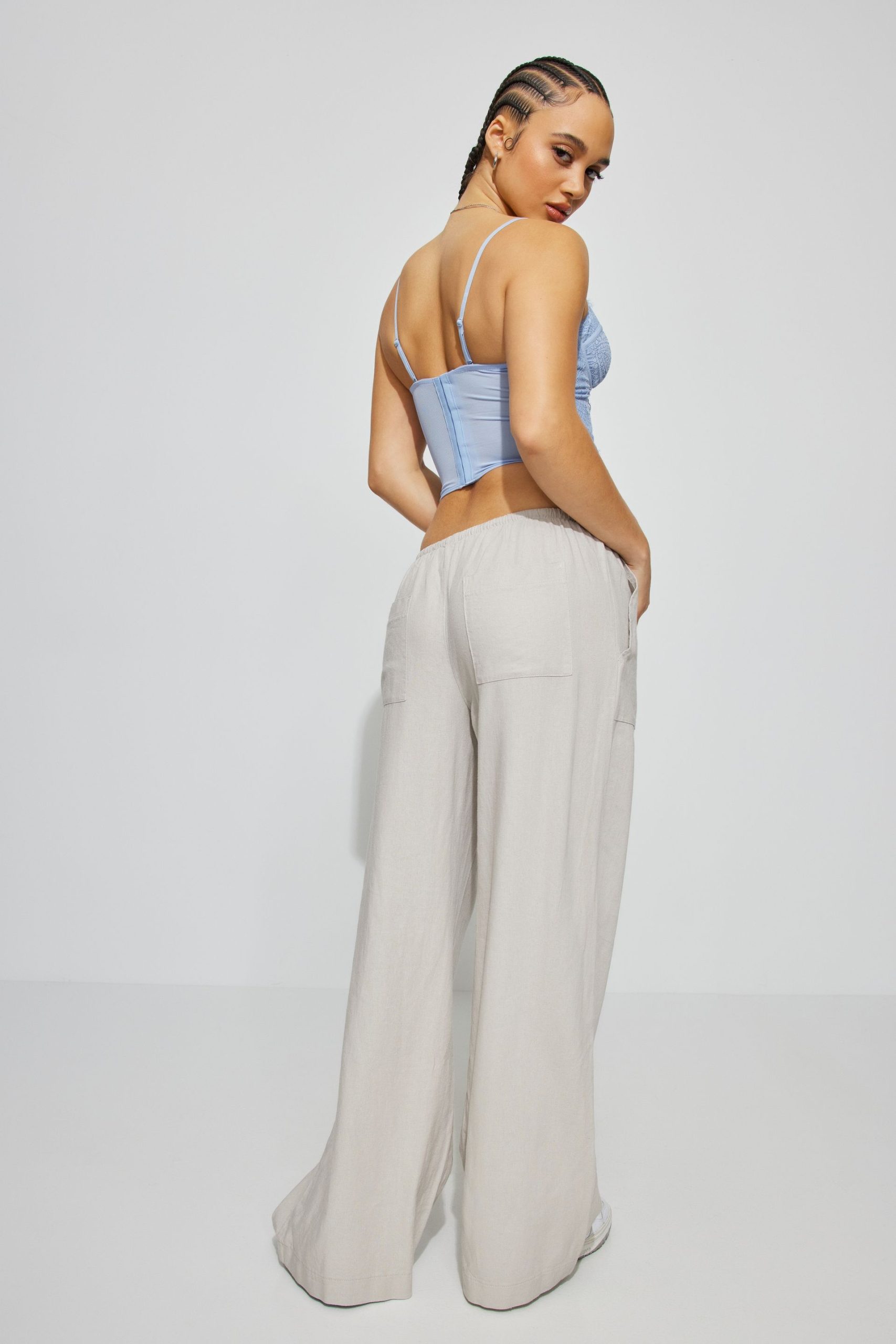 Millie Linen Pull-On Pants Gray women – So soft and with a baggy fit to better accentuate your little tops ! Features Self-tie drawstring at waistband Four-pocket styling Semi-sheer (in lighter colors) Size & Fit Fit: Relaxed Rise: 9.5