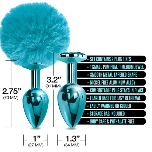 Nixie Jeweled Metal Pom Pom Butt Plug Set