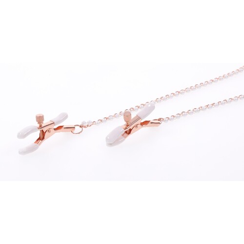 Classy meets naughty when you slip into this playful accessory. Peach-colored collar, rose gold details and pearly adornments look so luxurious!