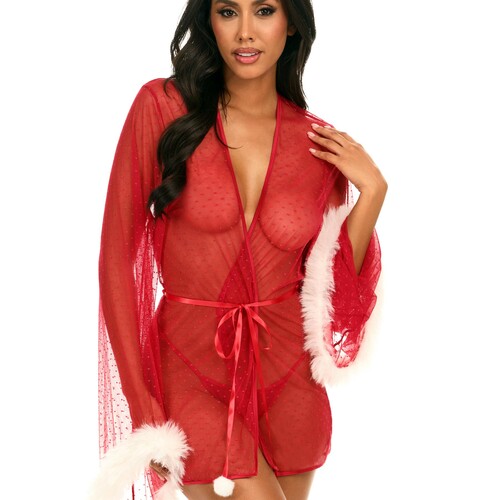 Be the hottest holiday present ever! This sheer dotted mesh robe feels whisper-soft and reveals your hot assets in steamy celebratory style.