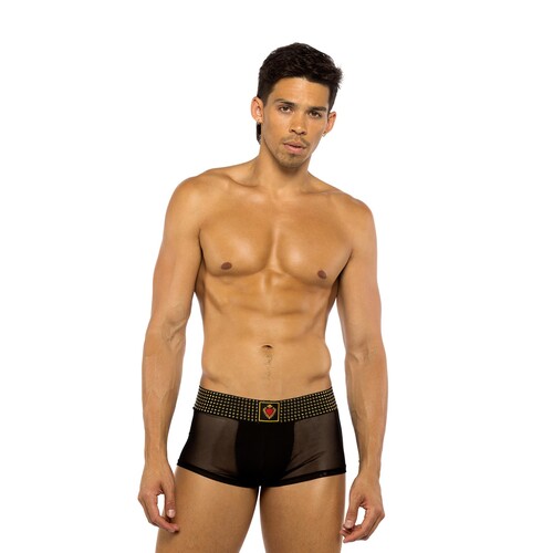 Be your partner's favorite bedroom stud in these sexy trunks! Soft, stretchy, and sheer except for the pouch, they’ll show off your goods at their best.