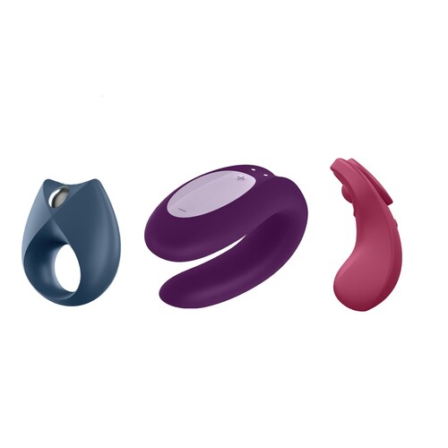 These vibes are even more fun when used together! Set includes Sexy Secret Panty Vibe, Double Joy Partner Vibe & Royal One Ring Vibe. Discreet shipping.