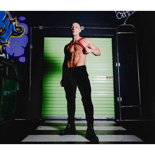Gear up for mind-blowing bondage games! This bonded leather harness’s multiple O-rings let you attach your favorite cuffs, ties, and more. Ships quick.