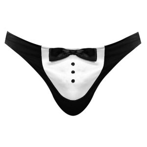 Tonight’s special is naughty shenanigans courtesy of the tuxedo-style Serve It Hot Maître D’ Novelty Thong from Male Power! Order now for discreet shipping.