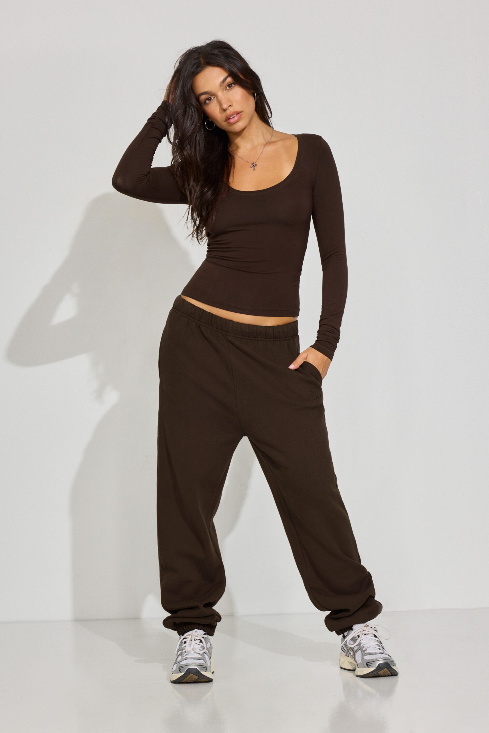 UltraFleece Boyfriend Sweatpants BROWN women – Color may rub off on lightly colored fabrics. Wash separately to avoid color transfer. Dump him but keep the sweats. Features Drawstring at elasticized waistband Two-pocket styling Ultra-soft fleece interior Logo embroidered at front Size & Fit Fit: Relaxed Rise: High Model is wearing size S Materials & Care Content: 75% cotton, 25% recycled polyester Care: Machine wash, cold Imported