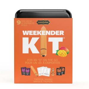 Unpack sexy romance with this naughty weekend getaway kit! Includes 10-function bullet vibe, kissable body oil, flavored lube, glide, cards, and more!